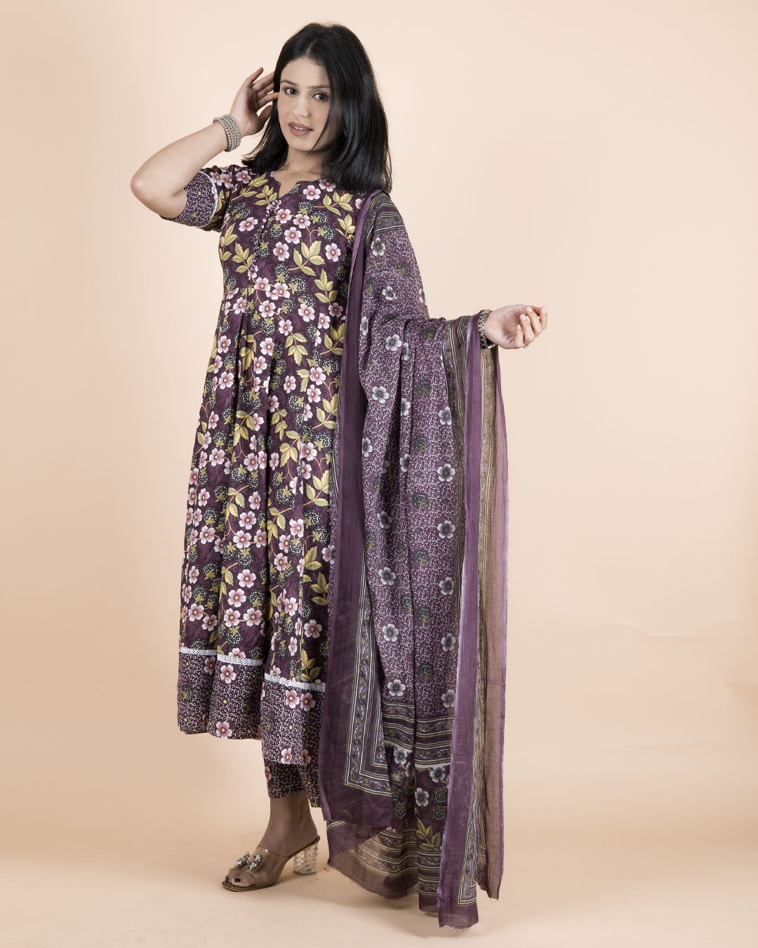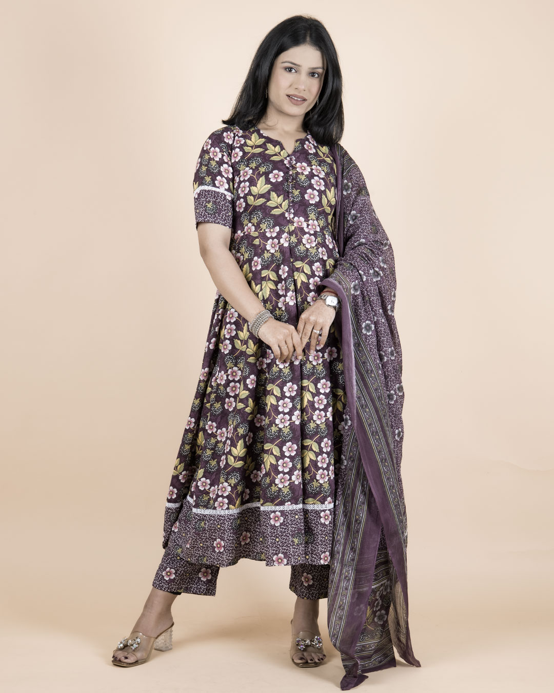 Color: Deep Purple with multicolor floral print